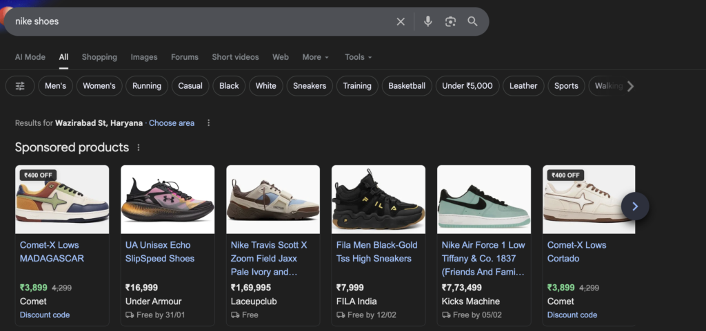 • Google Shopping Ads appear at the top of Google search results, distinct from traditional text ads.